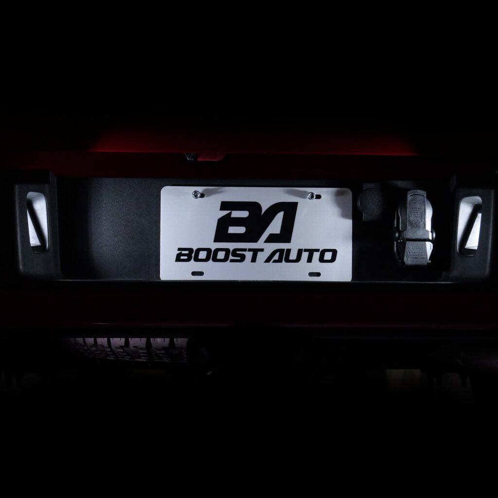 Upgrade the look of your truck with Boost Auto’s LED License Plate Light Kit for the 2004-2014 Ford F-150 trucks. Designed for a perfect factory fit, this kit replaces the dull, yellow factory bulbs with crisp, bright white LEDs that are 15 times brighter for a modern look and improved rear visibility.