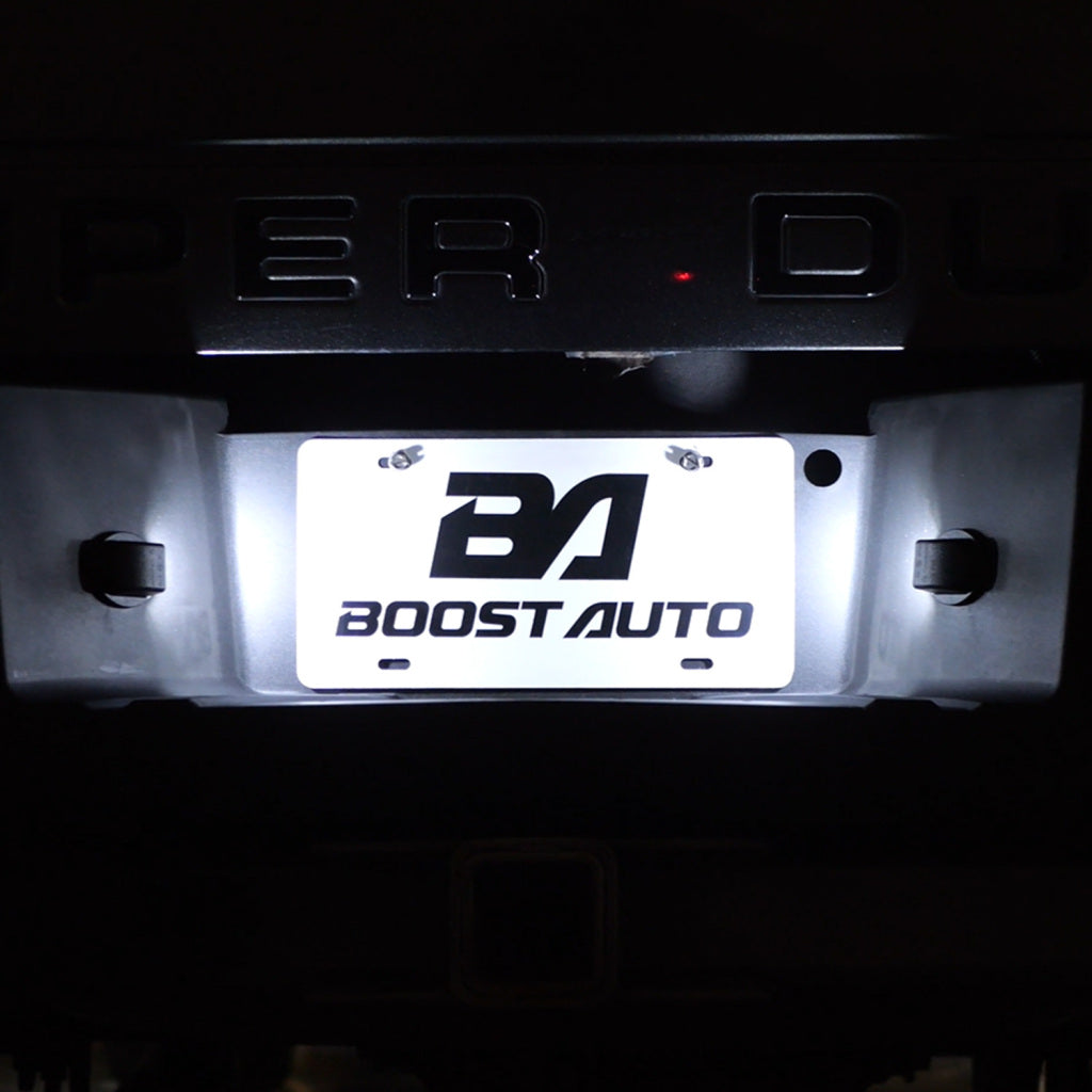 Upgrade the look of your truck with Boost Auto’s LED License Plate Light Kit for the 1999-2007 Ford Super Duty trucks. Designed for a perfect factory fit, this kit replaces the dull, yellow factory bulbs with crisp, bright white LEDs that are 15 times brighter for a modern look and improved rear visibility.