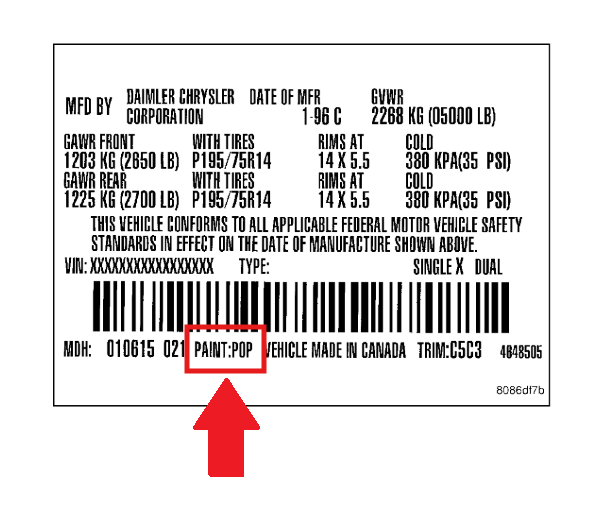 The paint code for your truck can be found on the vehicle information sticker on the driver-side door jamb. We've attached an image depicting where the paint code is located on the sticker. The paint code will be a 3-digit code listed after “paint”. If you're unsure of your paint code, simply type your vehicle's color.