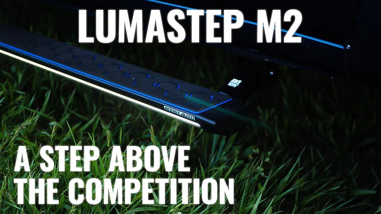 Introducing Boost Auto's latest innovation, Lumastep M2 Powered Light Up Running Boards. Setting new industry standards, these advanced running boards combine auto-retract and auto-deploy technology with Boost Auto's signature lighting upgrades. These powered running boards are built to last and withstand even the harshest environments.