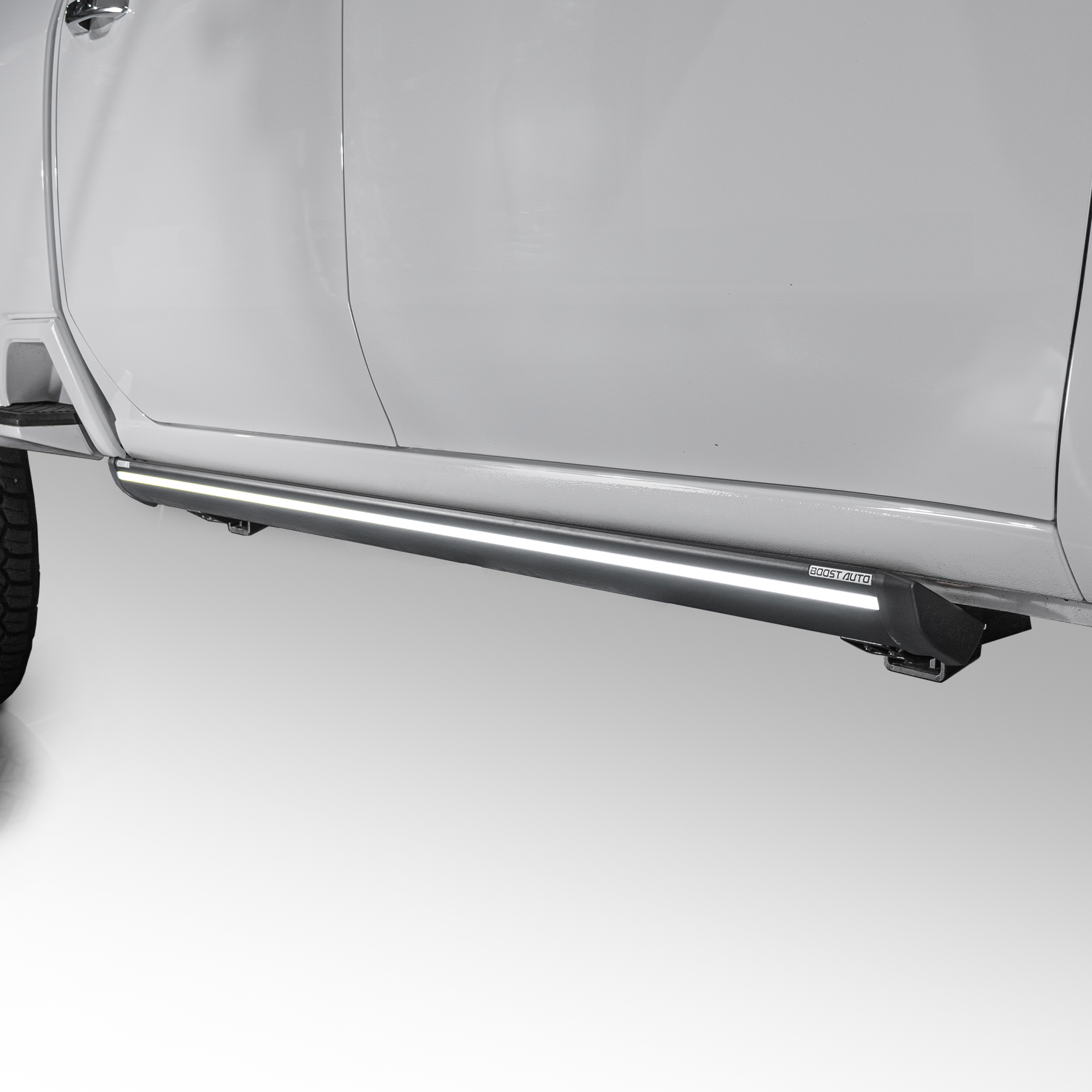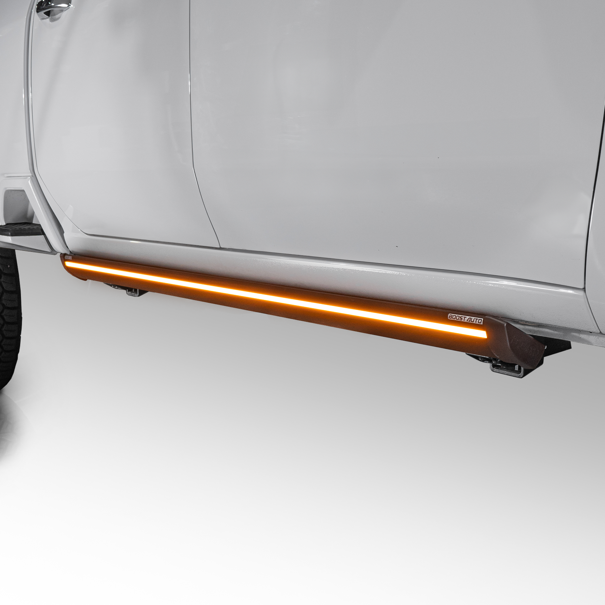 Introducing Boost Auto's Lumastep M2 Powered Light Up Running Boards. Designed for the 2025+ Ram 1500 trucks. Setting new industry standards, these advanced running boards combine auto-retract and auto-deploy technology with Boost Auto's signature lighting upgrades. These powered running boards are built to last and withstand even the harshest environments.