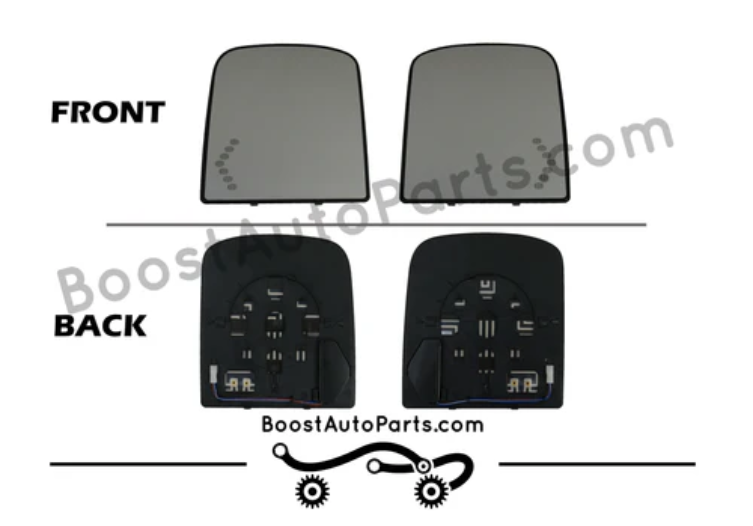 This glass will work on the older style tow mirrors we offer (like the mirrors in the image below). It comes with the backing plate so you can just snap it on and plug in the defrost. This glass does come with defrost.