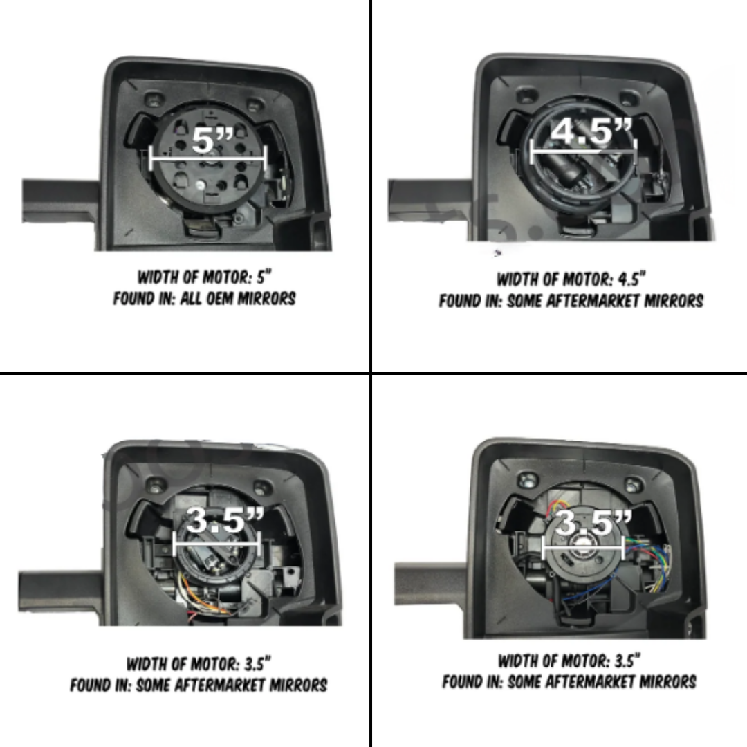 Boost Auto Parts offers a full range of replacement upper glass compatible with all OEM and aftermarket Silverado and Sierra tow mirrors. Please reference the graphic to determine which glass is correct for your vehicle.